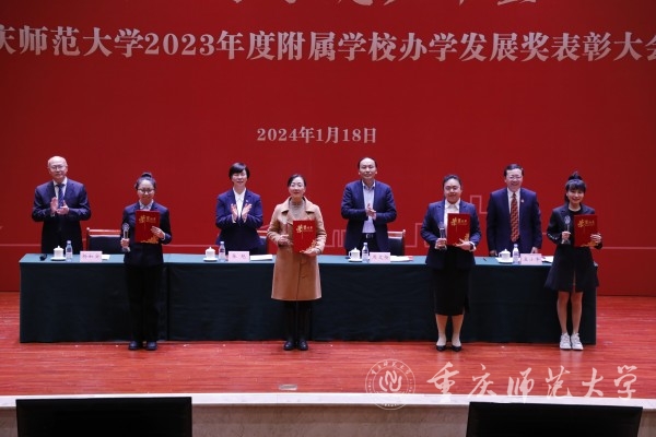 1月18日,学校在校友会堂音乐厅召开mg冰球突破豪华版网址2023年度附属学校办学发展奖表彰大会。学校党委书记张艳,党委常委、副校长孟小军,重庆高新区公共服务工委书记、公共服务局局长周文杨出席会议。学校党委常委、副校长杨如安主持大会。