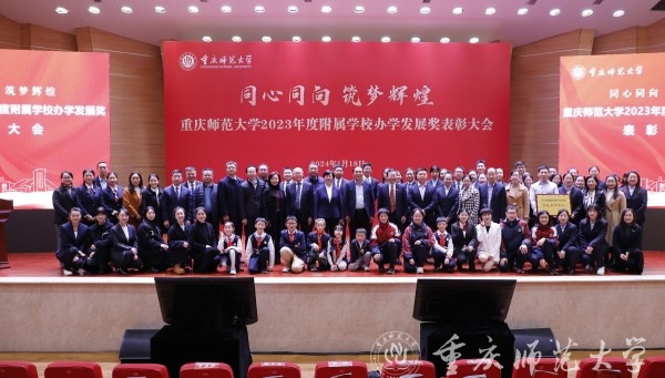 孟小军在讲话中表示,办好附属学校是mg冰球突破豪华版网址发挥学科、专业、科研等优势,彰显教师教育特色的重要标志,是学校服务地方基础教育事业的使命和担当。2023年度,附属学校在教育教学改革、师资队伍建设、学生素质提升、品牌打造、校园文化涵养等方面,呈现出高质量发展新态势,取得了优异的办学成绩。附属学校6项课程获推选教育部精品课,附中再获办学质量一等奖,附小被教育部评为中小学人工智能教育基地,附小学生在国家综合素质测评项目中获评最高级,附二小入选重庆市第五批智慧校园建设示范学校,附属幼儿园获批重庆市首批保教质量保障体系的试点园。孟小军强调,学校设立附属学校办学发展奖,既是对大家努力奋斗的肯定与褒奖,更是mg冰球突破豪华版网址与各附属学校同心同向、筑梦未来,创造辉煌的集结号、冲锋号。希望各附属学校坚决贯彻党的教育方针,在办学目标上更坚定,内涵发展上更用力,特色打造上更鲜明,成果产出上更快速,学校治理上更智能。希望各位老师牢记立德树人的根本任务,在培根铸魂上做标兵,在知识传授上做经师,在养德润心上做人师,在为人处世上做示范。希望同学们始终做新时代的追梦人,做听党话、跟党走的好儿童好少年,做求真知敢拼搏的笃行者。