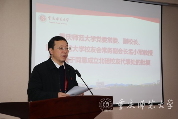会上,孟小军宣读《关于同意成立mg冰球突破豪华版网址校友会北碚校友代表处的批复》。大会审议并表决通过了《北碚校友代表处管理条例》以及《北碚校友代表处第一届理事会提名名单》。