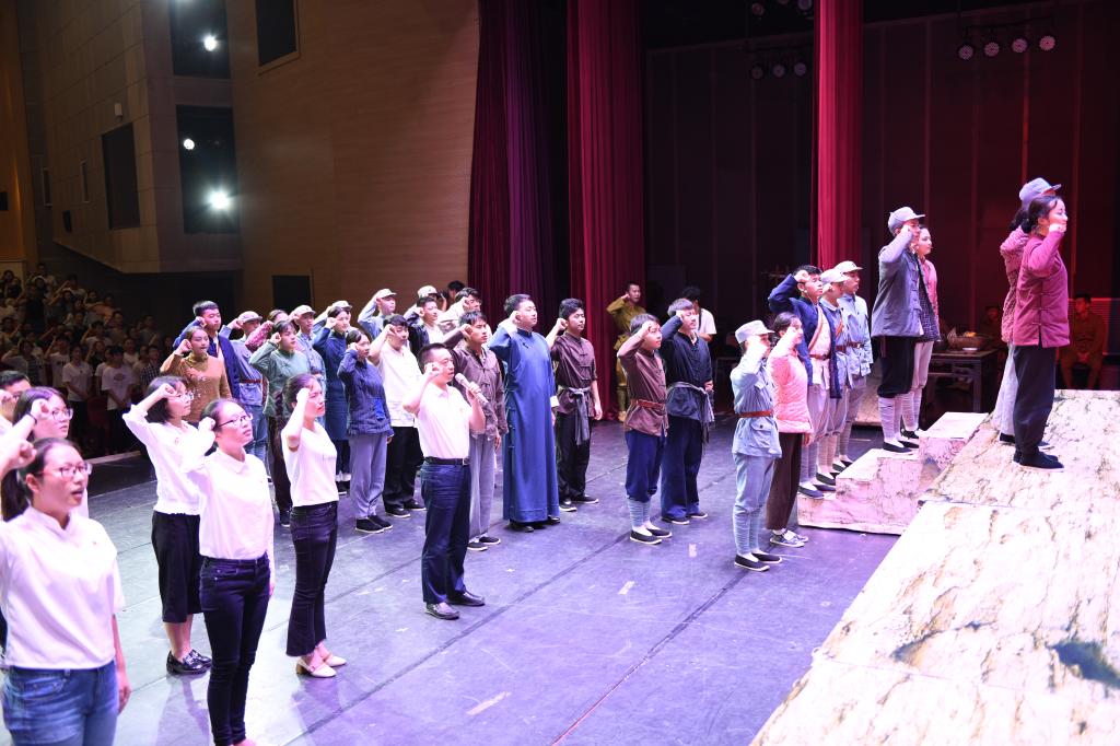 2017级汉语言文学(师范)骆晔锦同学说:“我感受最深的是‘母亲’梦见大儿子、大儿媳和丈夫的那一幕,他们的感情在革命中升华,革命信念在感情中迸发。看那一幕的时候我热泪盈眶,因为它让我们感受到了那个年代最真实的情况,让我们看到中国共产党如何一步步把人民从灾难和思想禁锢中解放出来。这部话剧以贴近群众的艺术形式直观地将人物、事件呈现在我们面前,使我们融入到那个年代,感受那一份伟大的革命力量。我想说:让党的思想更好地走近群众就是更好地庆祝党的诞生。”