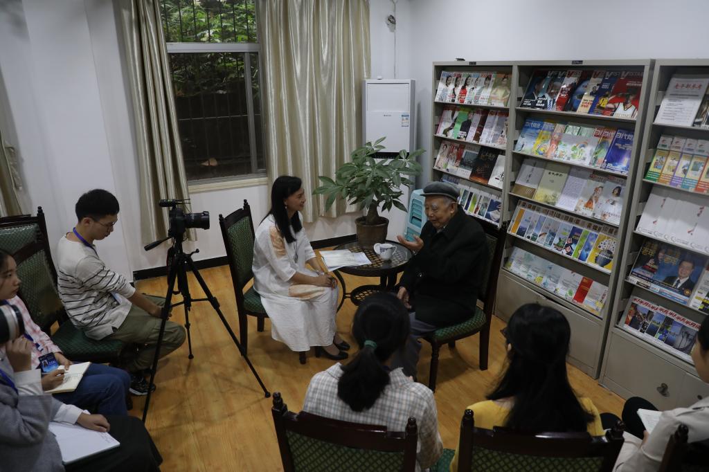 一位92岁的老人,右眼模糊,看东西已是一团白光;左耳失聪,右耳尚有微弱听力……他调侃道:“我已经是时代的落伍者”。他衣着整洁,满含笑意,精神矍铄,平静而安详地等待记者们把机位调好。这位老人就是冰球官网原中文系退休教师董味甘教授,也是写下《中国路赋》、《重庆赋》、《双城赋》、《重庆火凤凰赋》等多篇诗赋的高产作家。