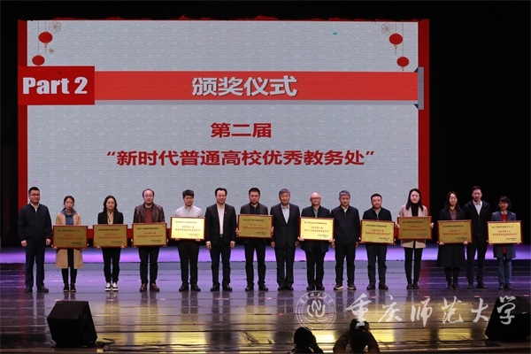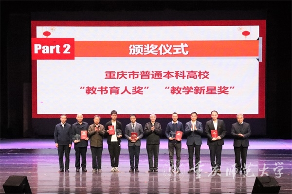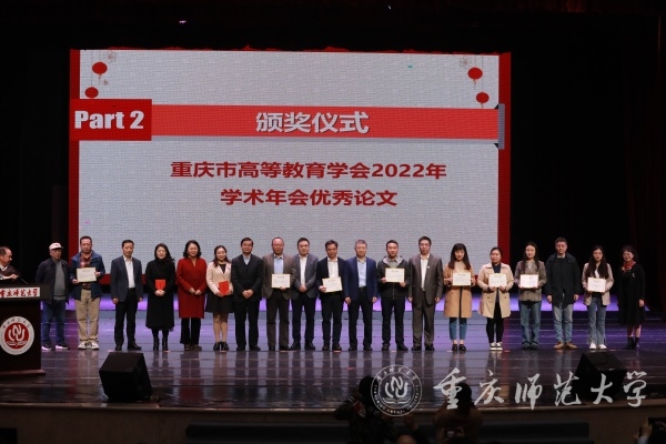 颁奖活动由学会副会长、长江师范学院党委书记黄大勇主持。与会嘉宾、领导嘉宾为“教书育人奖”“教学新星奖”获奖教师、“新时代普通高校优秀教务处”和2022年学术年会优秀论文一等奖获得者进行了颁奖。随后,西南大学廖和平教授、西南政法大学马勇副教授,四川外国语大学教务处处长刘玉梅、重庆电子工程职业学院教务处处长童世华分别发言。