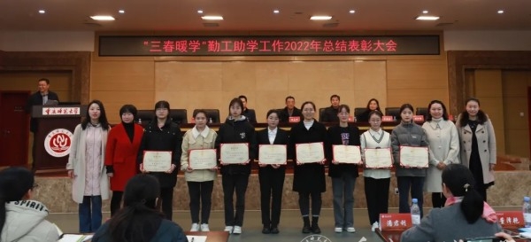 3月2日下午,冰球官网在博雅楼504会议室召开“三春暖学”勤工助学2022年总结表彰大会暨2023年岗位素能培训会,校党委副书记陈志军、学生资助领导小组成员单位负责人、勤工助学学生代表及受表彰人员参加会议。
