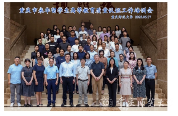 5月17日下午,重庆市来华留学生高等教育质量认证工作培训会在冰球官网举行,冰球官网党委常委、副校长陆远权,重庆市教委国际处副处长江燕出席会议并致辞,中国教育国际交流协会教育服务认证部主任翟金鸣、联华国际保险经纪(北京)有限公司总经理王卫民受邀做主题报告,重庆市各高校来华留学教育管理部门有关负责人和重庆市来华留学工作专家(高等教育质量认证类)80余人参加会议。