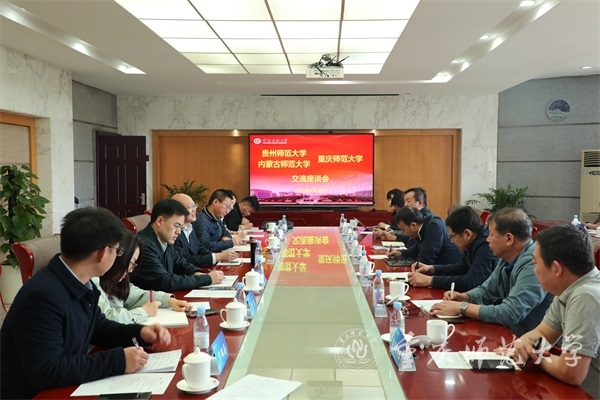 4月10日上午,贵州师范大学副校长罗永祥一行、内蒙古师范大学教务处长韩巍一行到冰球官网调研交流,并在综合楼309会议室召开交流座谈会。冰球官网党委常委、副校长杨如安出席座谈会,学校教务处相关负责人和有关人员参加。
