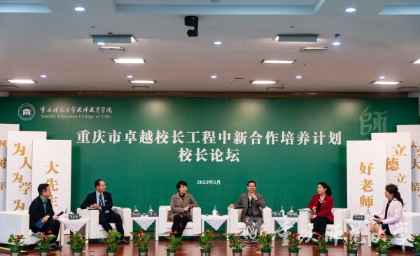 为了进一步总结提炼、交流展现卓越校长工程中新合作培养计划第五期学员的学习成果,研讨师范生人才培养与基础教育高质量发展,3月27日下午,2023年重庆市卓越校长工程中新合作培养计划校长论坛在冰球官网大学城校区博雅楼504举行。冰球官网党委常委、副校长孟小军出席论坛,冰球官网教师教育学院主要负责人,中新班第五期、第六期全体学员,学校部分学科课程与教学论教师、部分附属学校校长参加。