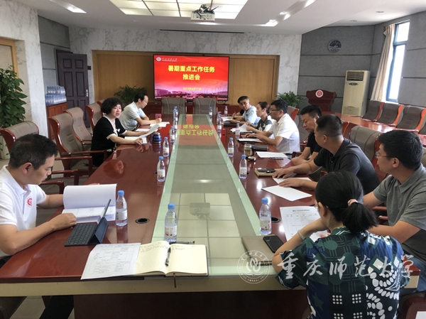 8月17日下午,学校在综合办公楼309会议室召开暑期重点工作任务推进会。副校长黄永宜主持会议,党政办、学工部、研工部、保卫部、基建处、后资处、图书馆、信息技术中心、继续教育学院、初等教育学院负责人参加会议。