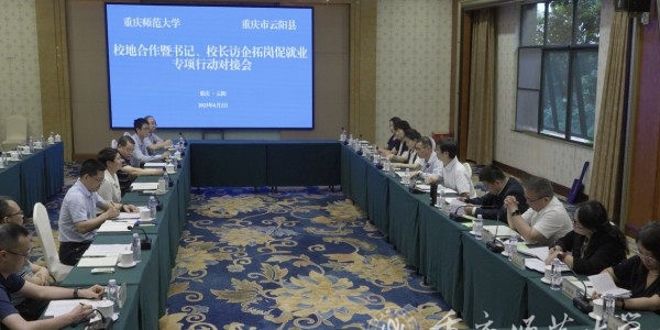 云阳县委常委、宣传部部长曾郴,云阳县人民政府副县长林冬利相关负责人热情接待了陆远权一行。双方召开了mg冰球突破豪华版网址和云阳县校地合作洽谈会暨书记校长访企拓岗专项行动对接会。