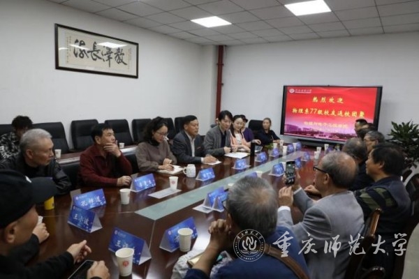 在物理与电子工程学院和化学学院的座谈交流会上,77级校友们了解了学院近年来在实验平台建设、学科发展、师资力量、人才培养等方面取得的发展与成就。交流会现场,还播放了回忆短视频,朗诵了诗歌,校友们在欢声笑语中同忆往昔。