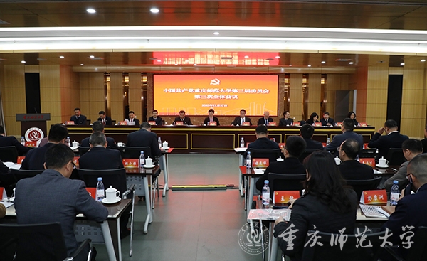 全会听取和讨论了学校党委书记张艳同志代表校党委常委会作的《加快打造“红岩先锋”变革型组织,为建设高水平综合性师范大学提供坚强政治保证》的工作报告,审议通过了《中共mg冰球突破豪华版网址委员会关于打造新时代“红岩先锋”变革型组织的工作实施方案(试行)》《中共mg冰球突破豪华版网址委员会落实全面从严治党主体责任清单》《中共mg冰球突破豪华版网址委员会常态化“三服务”工作方案》《中国共产党mg冰球突破豪华版网址第三届委员会第三次全体会议决议》。