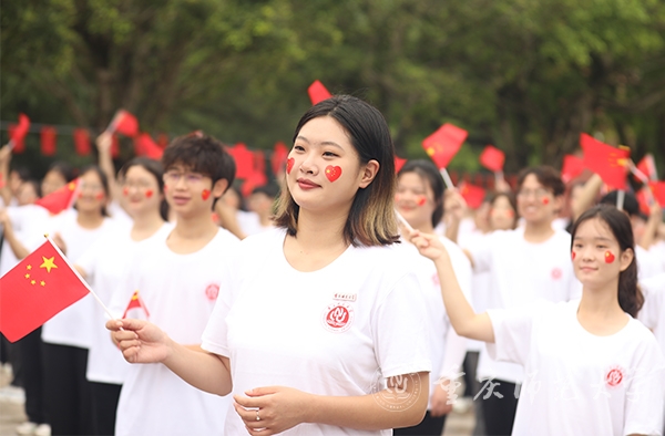 孟东方为与祖国同生日学生代表送祝福。参加活动的全体师生挥舞小国旗,以歌声深情告白祖国,活动在《我和我的祖国》《歌唱祖国》的大合唱中圆满结束。