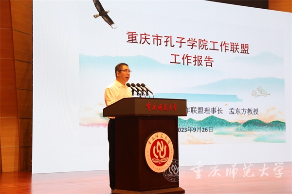 9月26日上午,“重庆市孔子学院工作联盟换届暨更名大会”在冰球官网校友会堂音乐厅召开。冰球官网党委副书记、校长孟东方,四川外国语大学副校长王仁强、重庆市教育委员会国际处副处长江燕以及重庆市孔子学院工作联盟各成员单位代表共70余人参加会议。大会由重庆市孔子学院工作联盟秘书长雷勇主持。