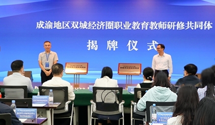 会上,举行了“成渝地区双城经济圈职业教育教师研修共同体”成立揭牌仪式。该共同体由全国重点建设职教师资培训基地电子科技大学和mg冰球突破豪华版网址作为牵头单位,以四川、重庆自愿加入的本科院校、高职院校、中职学校、企业、行业协会、研究机构以及社团组织为主体,形成项目驱动、资源共享、相互借鉴、协同研究、共同发展的良好机制,加快成渝地区职业教育融合发展、高质量发展。