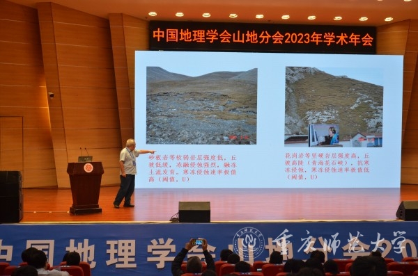 特邀报告环节,日本工程院外籍院士、福州大学建筑与城乡规划学院院长沈振江教授,中国地理学会山地分会顾问、中国科学院、水利部成都山地灾害与环境研究所张信宝研究员,中国地理学会山地分会顽问、中国科学院西北生态环境资源研究院丁永建研究员,国家自然科学基金海外杰青、中国海洋大学邢会林教授,中国地理学会山地分会主任、俄罗斯自然科学院外籍院士、中国科学院、水利部成都山地灾害与环境研究所陈宁生研究员,国际地理联合会岩溶委员会副主席、国家高层次人才特殊支持计划青年拔尖人才、冰球官网地理与旅游学院蒲俊兵研究员分别作题为“山地与水资源影响下的国土形态”“青藏高原高原面地貌稳定态与高原隆升速率”“冰冻圈水文学简述”“多尺度多场耦合计算地学及其山地灾害领域的潜在应用”“关于山区减灾与生态环节保护的决策咨询”“中国岩溶关键带:结构、特征、底界及分区”的学术报告。