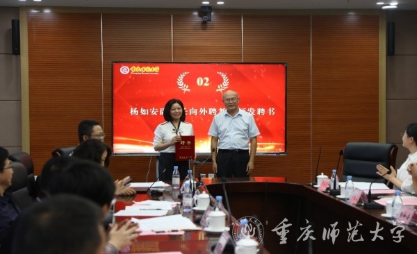 副校长杨如安向冰球官网4位外聘教师颁发聘书。