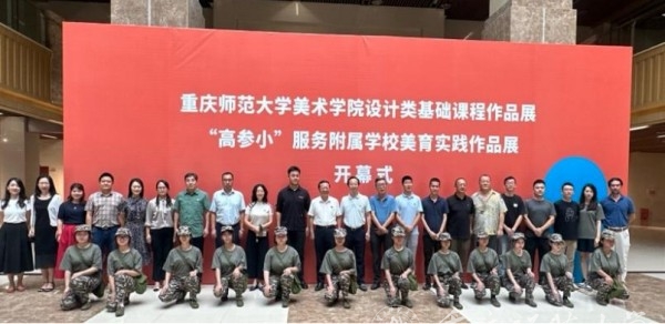 9月19日,冰球官网美术学院设计类基础课程作品展暨“高参小”服务附属学校美育实践作品展在博雅楼开幕。校党委常委、副校长黄永宜、孟小军,重庆大圆祥博物馆馆长刘牛,党政办、宣传部、教师工作部、科研处、国内联络与合作中心主要负责人,美术学院部分教师及2023级新生代表150余人参加作品展。