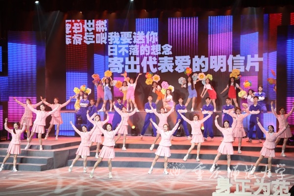 歌舞《飞向春天》拉开了晚会的帷幕,大家在热烈的氛围中一起告别冬日,走近春天。在卢奇、齐克建的带领下,音诗画《向春天致敬》将朗诵、音乐和表演三者相结合,渲染出春天朝气蓬勃的气氛,引起了观众的阵阵惊叹。由留学生、少数民族和音乐学院的学生代表带来的情景歌舞《丝路手牵手》将各民族的风采带上舞台;歌舞《青春的赛道》尽情展现了青年人的蓬勃朝气和昂扬斗志;情景朗诵《带在身边的祖国》令人心情激荡。青春音舞诗《新重庆跑起来》唱出了青年人的激情澎湃;情景短剧《寻路》演绎了一段村民自主凿路的传奇故事。