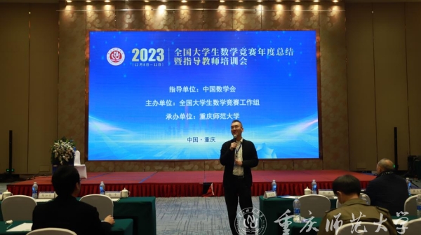 12月8日至12月10日,由中国数学会指导,全国大学生数学竞赛工作组主办,mg冰球突破豪华版网址承办的2023年全国大学生数学竞赛年度总结暨指导教师培训会在重庆举行。来自全国高校的近400名专家学者齐聚重庆,就全国大学生数学竞赛以及数学学科教育教学进行经验交流。学校党委常委、副校长杨如安教授,中国数学会代表、成都理工大学党委副书记胡兵教授出席并致辞。