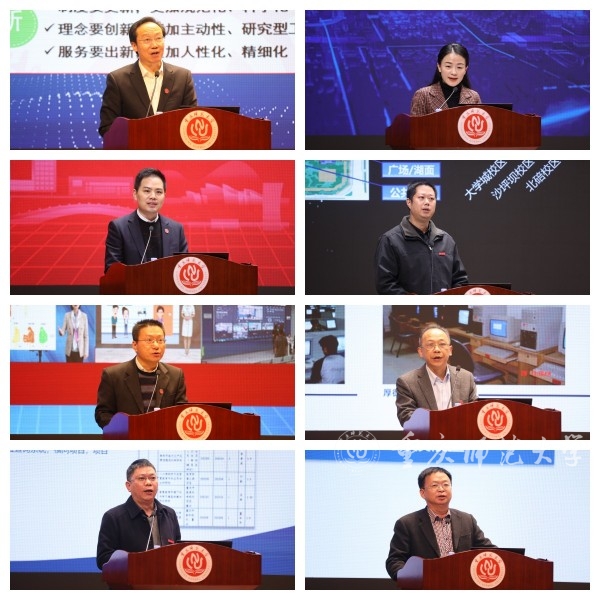 交流发言环节,学校党政办公室、党委宣传部、党委学生工作部、党委保卫部、教务处、图书馆、计算机与信息科学学院、信息技术中心负责人就数字应用对建设发展的促进以及数字化工作的思考作交流发言。