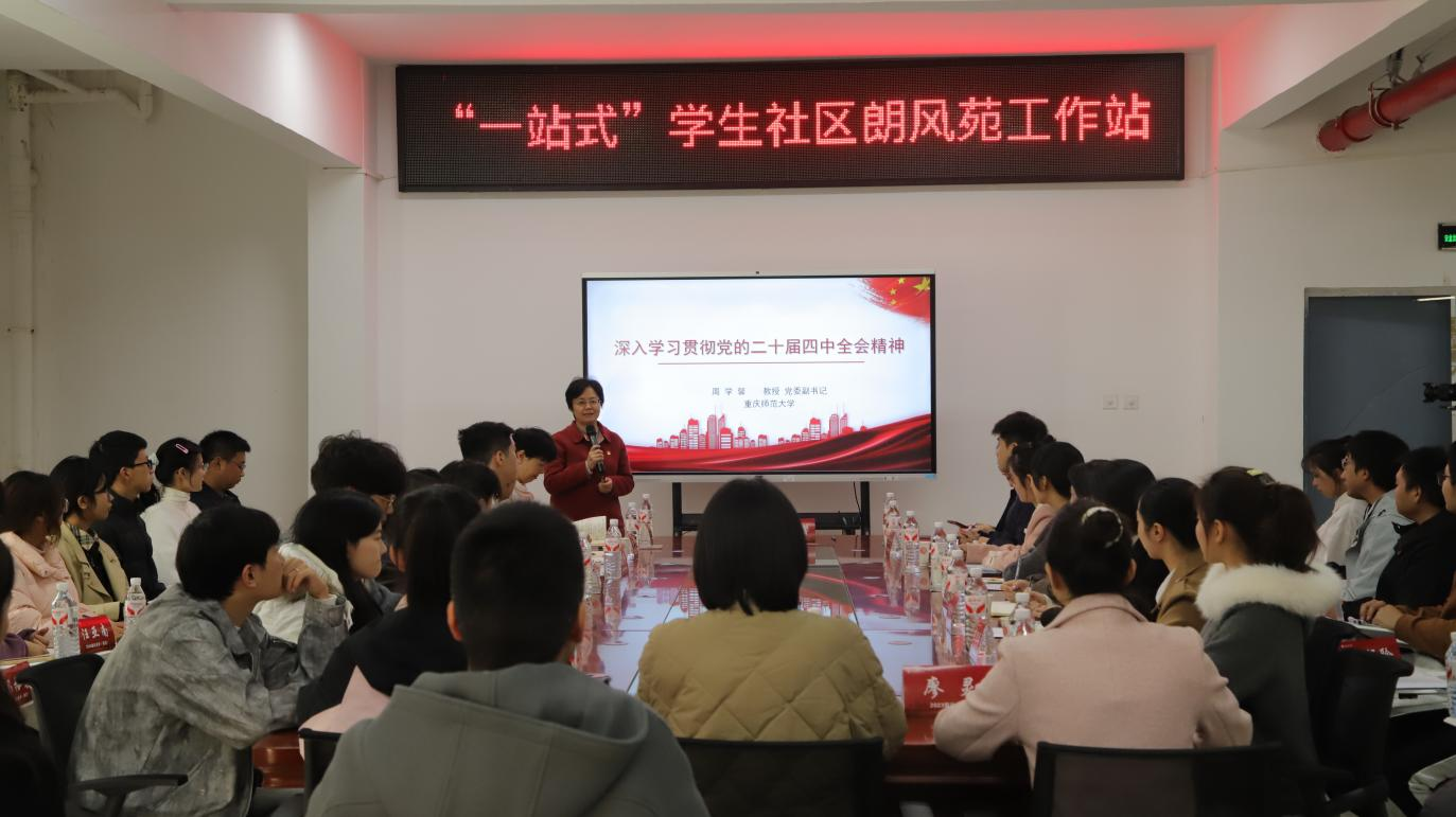 为深入学习宣传贯彻党的二十届四中全会精神,推动党的创新理论在学生社区落地生根、见行见效,11月20日下午,学校党委副书记周学馨走进“一站式”学生社区朗风苑工作站,为历史与社会学院 考古文博学院学生开展党的二十届四中全会精神理论宣讲,并与学生代表面对面交流座谈。
