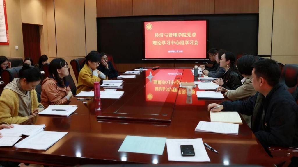 11月13日,中共mg冰球突破豪华版网址经济与管理学院委员会理论学习中心组在求是楼420室召开2025年第8次理论学习会。学院党委委员、纪委委员及各党支部书记参会,学校纪委委员胡芳列席指导。